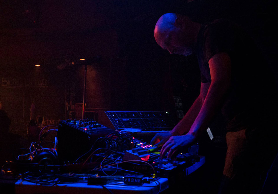The uniqueness of Vromb can be fully experienced during his rare live appearances.In fact, while electronic musicians will usually perform with a laptop, Vromb is performing with analog synthesizers.
